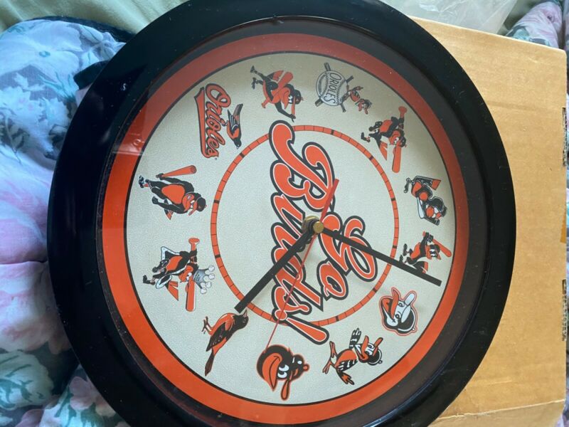 Title (ebay affiliate link): Orioles Vintage Go Birds Baltimore Orioles Black Frame Wall Clock Nice SG
