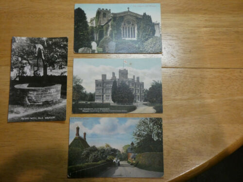 OLD WARDEN 4 postcards, the church, the well, the village, the mansion. Bedford