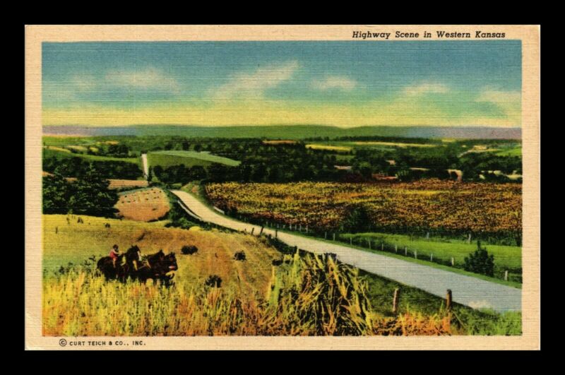 Title (ebay affiliate link): DR JIM STAMPS US HIGHWAY SCENE WESTERN KANSAS LINEN VIEW POSTCARD