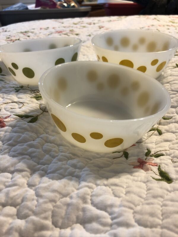 Title (ebay affiliate link): 3 Vintage Federal Glass Polka Dot 5 Inch Milk Glass Mixing Round Bowls Lot Set
