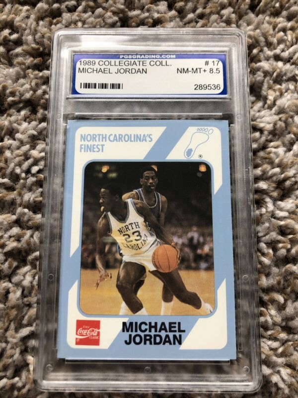Title (ebay affiliate link): 1989 North Carolina #17 Michael Jordan Coca Cola Collegiate Collection PGS 8.5
