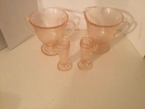 Royal Lace Pink Creamer, Sugar, Salt & Pepper Shakers by Hazel Atlas