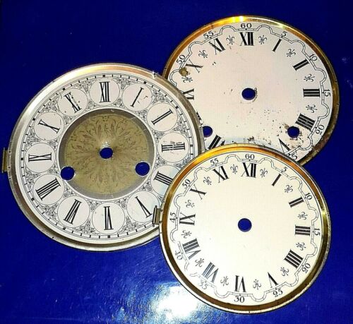 Title (ebay affiliate link): Lot Vintage/Antique Metal Clock Dials w/Painted Faces for Parts