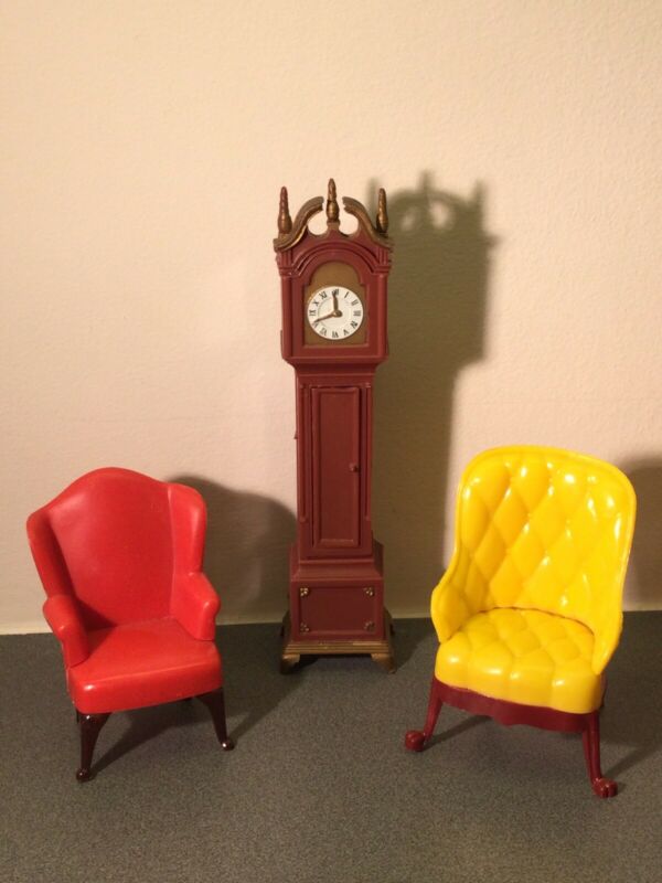 Title (ebay affiliate link): Louis Marx Grandfather Clock and Two Chairs Vintage Dollhouse Furniture Plastic