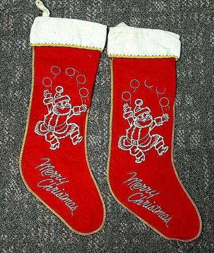 Title (ebay affiliate link): Vtg Felt Flannel Christmas Candy Toy STOCKING LOT of 2 Stenciled Graphics Santa