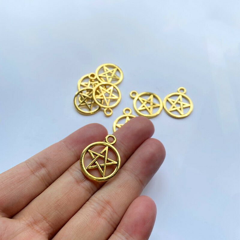 Title (ebay affiliate link): 6pcs 20x25mm Pentagram Charms Antique Gold Tone Making Jewelry