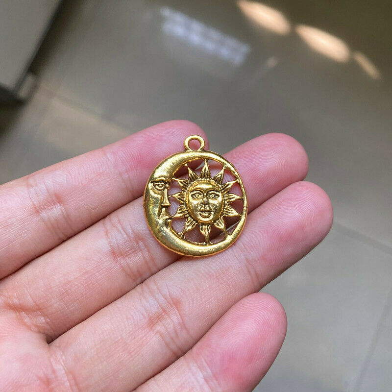 Title (ebay affiliate link): 4pcs 28x24mm Moon and Sun Charms Antique Gold Tone Making Jewelry
