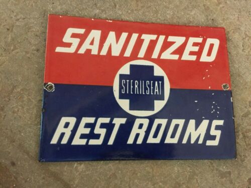 Title (ebay affiliate link): Porcelain Sanitized Rest Rooms Enamel Sign size 6" x 8" Inches