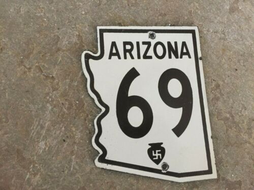 Porcelain Arizona 69 Enamel Sign Size 5" x 4" Inches