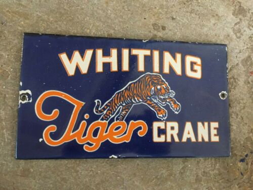 Porcelain Whiting Tiger Crane Enamel Sign size 8" x 4.5" inches