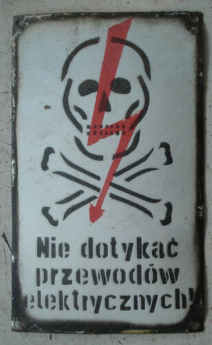 Title (ebay affiliate link): Polish DEAD SKULL VINTAGE ENAMEL PORCELAIN Do no touch electricity