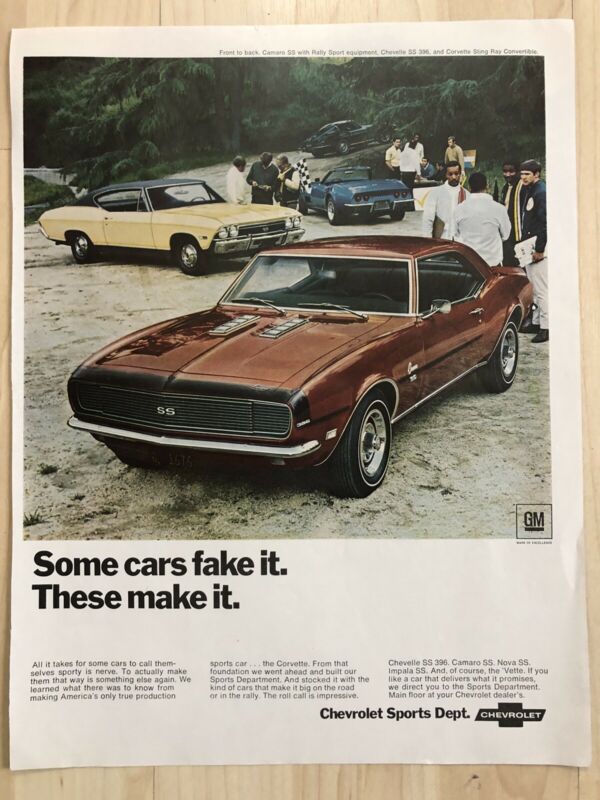 Title (ebay affiliate link): Full Page Vintage Camaro SS Chevelle Corvette Ad