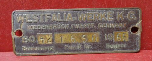 1965 WESTFALIA VOLKSWAGEN WESTY BRASS EMBLEM BADGE INFORMATION SIGN