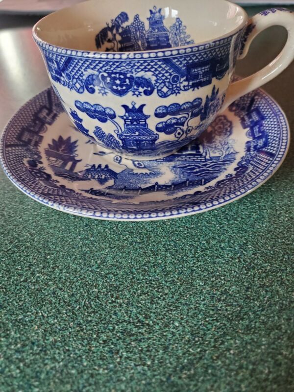 WOODS WARE CHINA BLUE & WHITE CUPS TEA MADE IN JAPAN WILLOW set 6