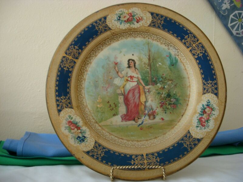 ANTIQUE VIENNA METAL ART PLATE BUTTERFLY GODDESSS 1905