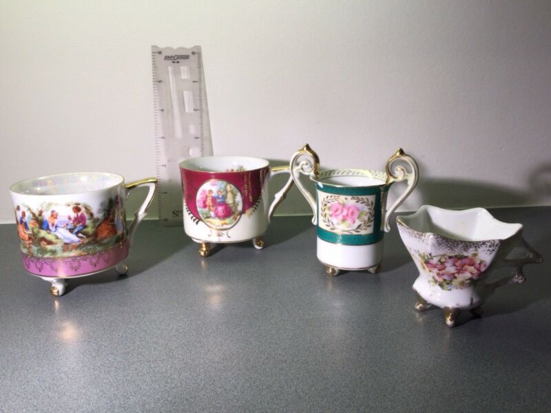 Lot Of Four: One 4 Footed & Three 3 Footed Tea Cups