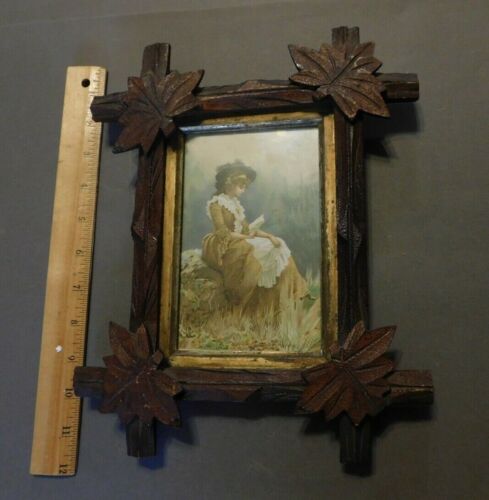 Title (ebay affiliate link): Antique Black Forest Adirondack 5" X 7" Carved Oak Leaf Frame VICTORIAN LITHO