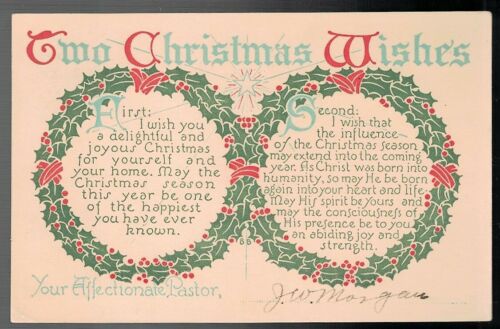 ANTIQUE 1906 UDB TWO CHRISTMAS WISHES YOUR AFFECTIONATE PASTOR POSTCARD