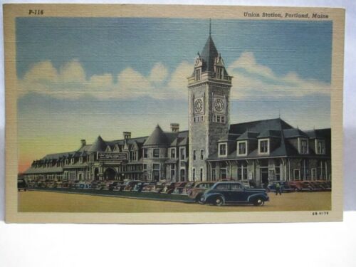 Title (ebay affiliate link): 1940 PORTLAND NEWS CO # P-116 POSTCARD " UNION STATION, PORTLAND ME " CARS UNUSE