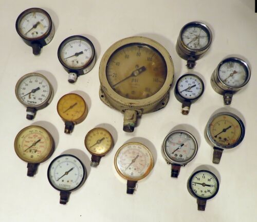 Lot of 15 Mixed Gauges Steampunk Art Industrial Factory PSI Pressure & others