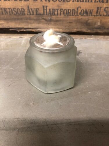 RARE SS WHITE FROSTED GLASS COTTON DISPENSER VINTAGE ANTIQUE DENTIST DENTAL