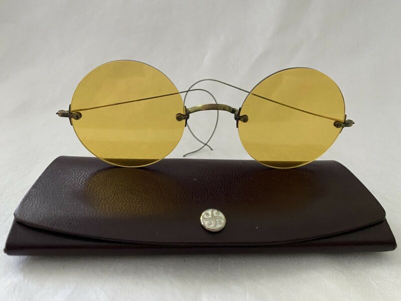 Title (ebay affiliate link): Vintage Gold Tone AO Large ROUND Lennon Look Amber Eyeglasses with Retro Case