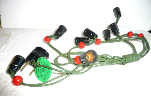 WORKING RELIANCE BUBBLE LIGHTS CORD 8 SOCKET C6 RED WOODEN BEADS NO CLIPS NEEDED