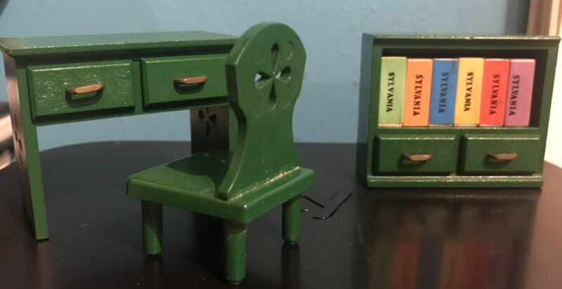 Sylvanian Families vintage green furniture - desk, chair and bookcase