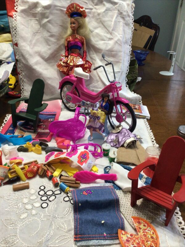 Title (ebay affiliate link): Vintage Lot Of Barbie Accessories, Bicycle, Food, Shoes, Chairs