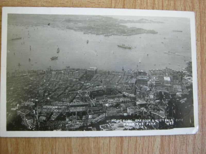 EARLY HONG KONG POSTCARD --- HONG KONG HARBOUR & VICTORIA CITY FROM THE PEAK