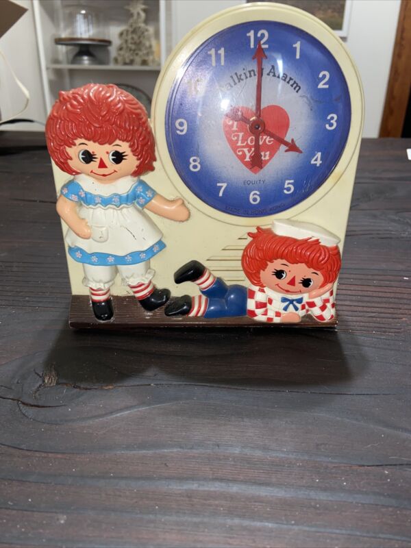 Vintage 1974 RAGGEDY ANN & ANDY talking alarm clock.