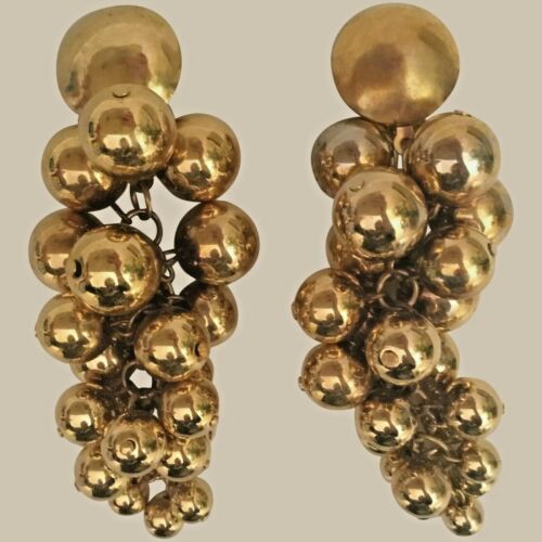 “Wild and Fun†Brass Balls Clip on Earrings 1980