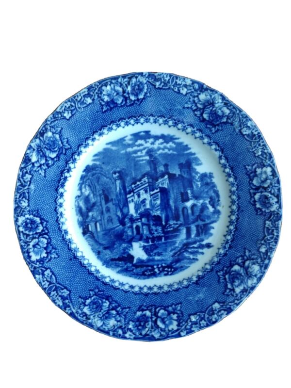 English Antique Flow Blue Alhambra Castle Transfer ware 8" Plate