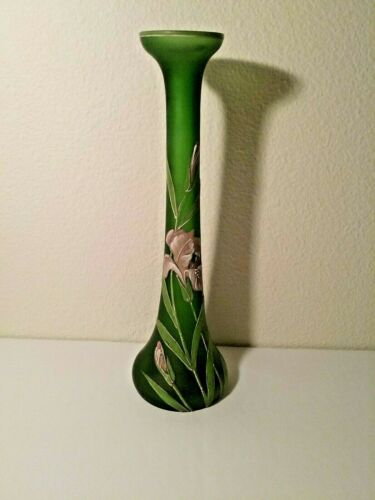 Title (ebay affiliate link): Antique ENAMELED SATIN GLASS Vase - Vintage Bud Vase - VICTORIAN Glass - No Dmg.