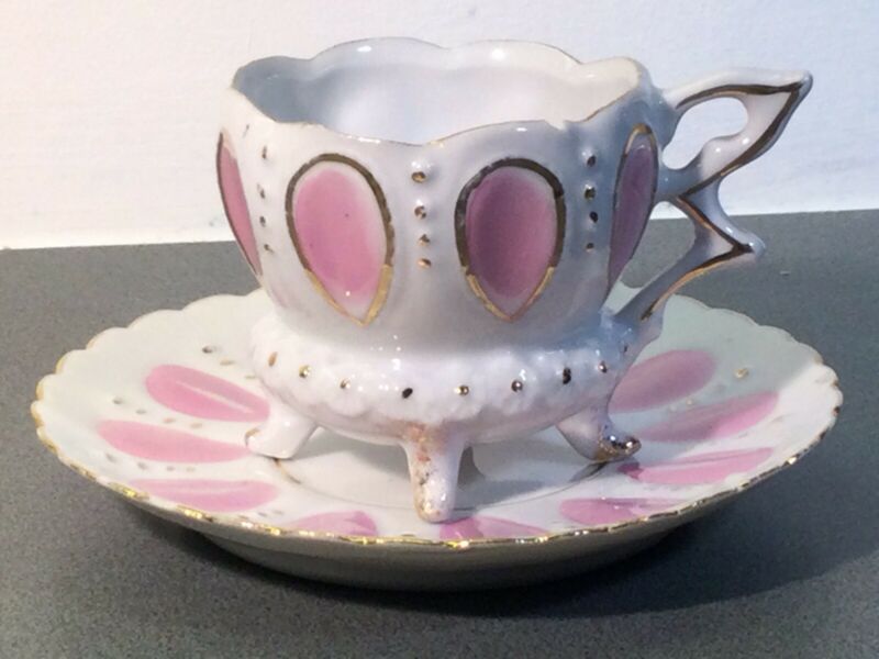 Four 4 Footed Teacup With Saucer, Small, Made In Germany