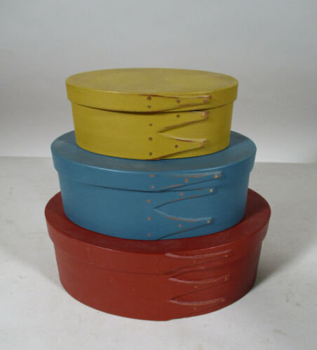 Title (ebay affiliate link): Set 3 Shaker Workshops Painted Wood Cherry Oval Boxes 7 3/8", 6" & 4 3/4"
