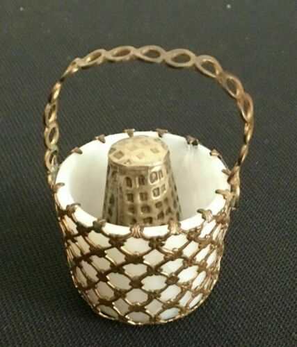Antique French Opaline Thimble Holder with RARE Brass Thimble AS IS