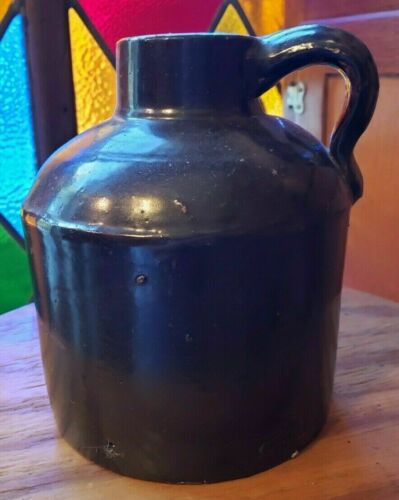 VINTAGE STONEWARE BROWN CROCK MOONSHINE JUG PRIMITIVE