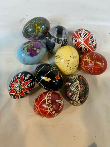 10 Eggs 9 Hand Painted Ukrainian Pysanka Wooden Easter Eggs. 1 marble C666