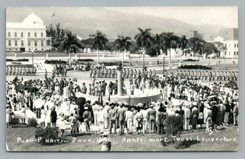 Title (ebay affiliate link): Dedication of Louverture Monument HAITI Port au Prince RPPC Photo April 7 1946
