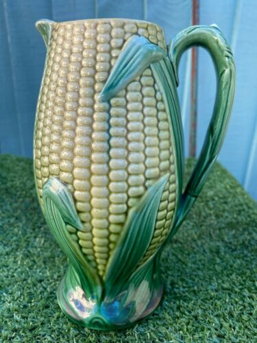 Title (ebay affiliate link): SUPERB 19thC MAJOLICA PITCHER or JUG, WITH SWEETCORN & LEAF DECORATION c1890s