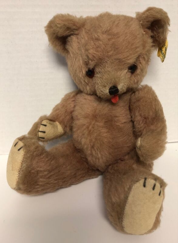 Title (ebay affiliate link): Vintage Brown Tan TEDDY BEAR 11" Jointed Plush Character Novelty Ear Tag Tongue