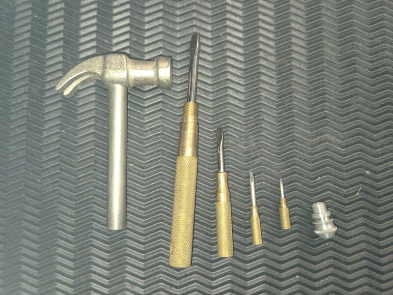 Title (ebay affiliate link): Vintage 5 in 1 Brass Hammer & Nestled Screwdriver Set
