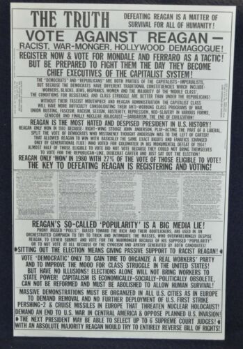 Title (ebay affiliate link): 1984 Anti - Reagan Political Cause Protest Poster - Against Racism & Capitalism