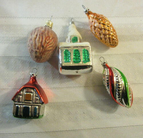 Lot of 5 Vintage Czech Republic Columbia Glass Feather Tree Christmas Ornaments