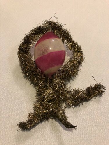 Antique German Mercury Glass Pink & White Striped Ornament Wire & Tinsel Trim