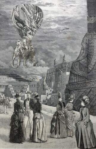 Title (ebay affiliate link): ORIGINAL SURREAL COLLAGE art hot air balloon ride telescope experience elephant