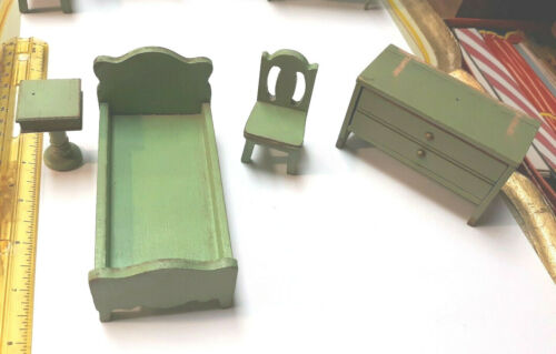 Vintage Strombecker Dollhouse Furniture Gr Bedroom bed table chair dresser lot