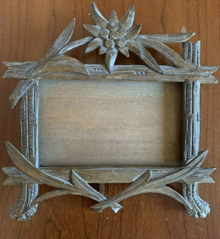 Title (ebay affiliate link): Hand Carved Small Wooden Alpine Picture Frame with Edelweiss, Hinged Stand