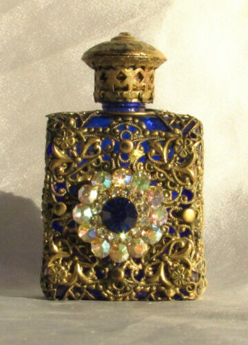 Vintage Art Deco Czech blue perfume bottle - chaton center